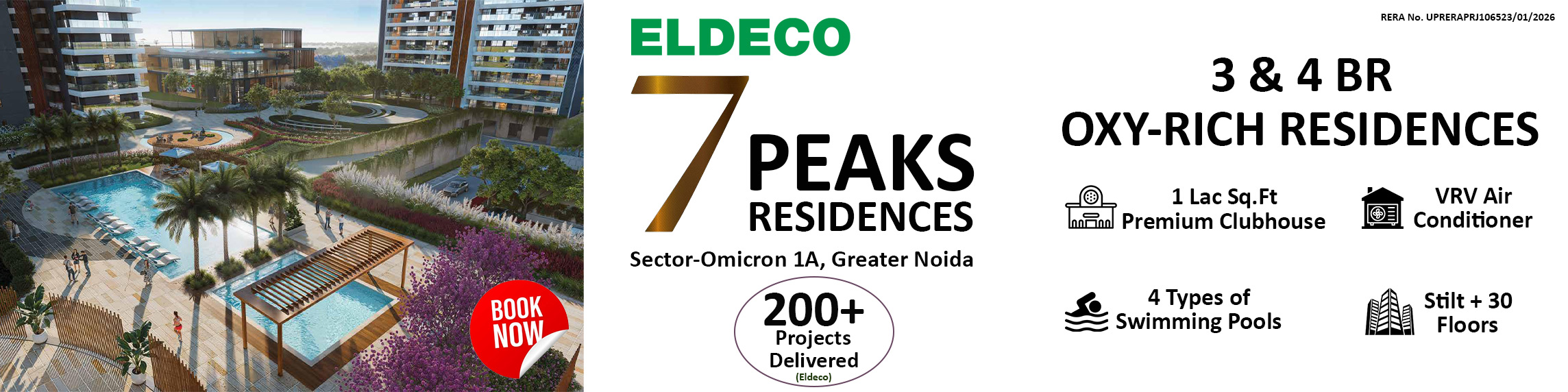 Eldeco 7 Peaks Residences is a forthcoming luxury residential development by Eldeco Group located in Omicron 1A, Greater Noida. Spanning 8 acres, this project features high-end 3 & 4 BHK apartments distributed across 7 thoughtfully designed towers, comprising approximately 850 residences, which ensures a low density and generous open spaces. The unique 4-side open plot provides excellent ventilation, abundant natural light, and picturesque green views.